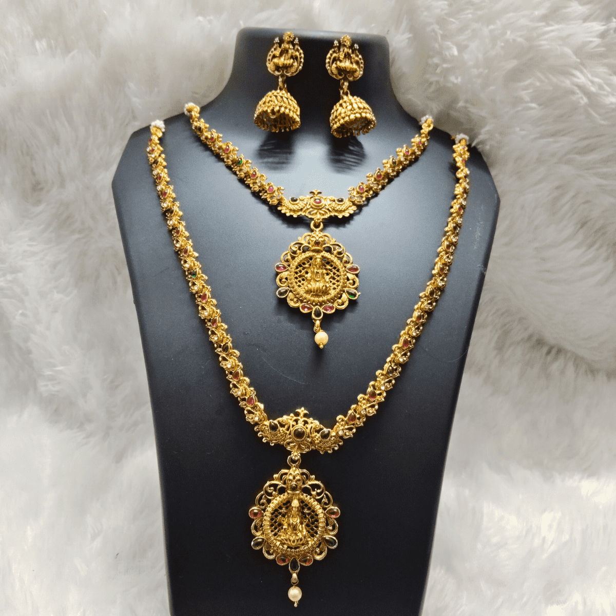 Lakshmi Temple Jewellery Set – Short and Long Necklace Combo