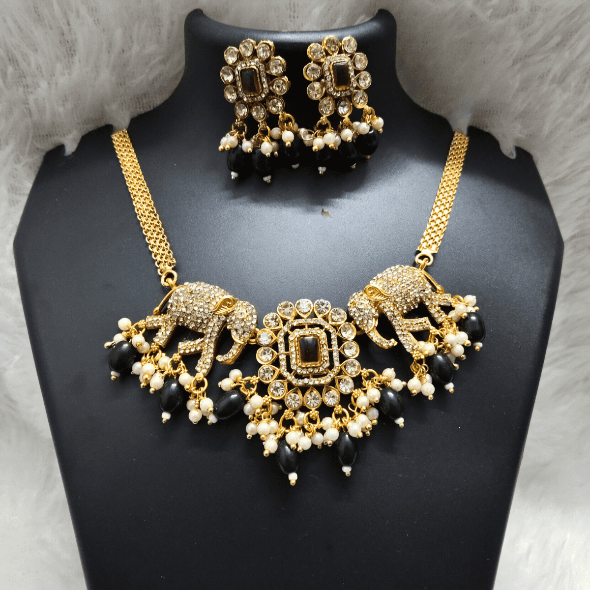 Royal Elephant Motif Choker Necklace Set with Earrings