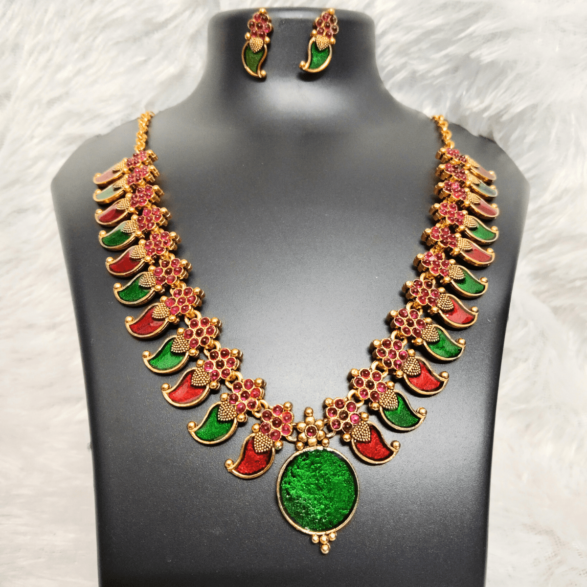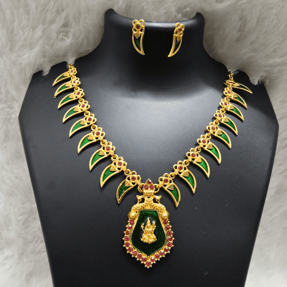 Kerala Palakka Necklace Set – Red & Green Lakshmi Design