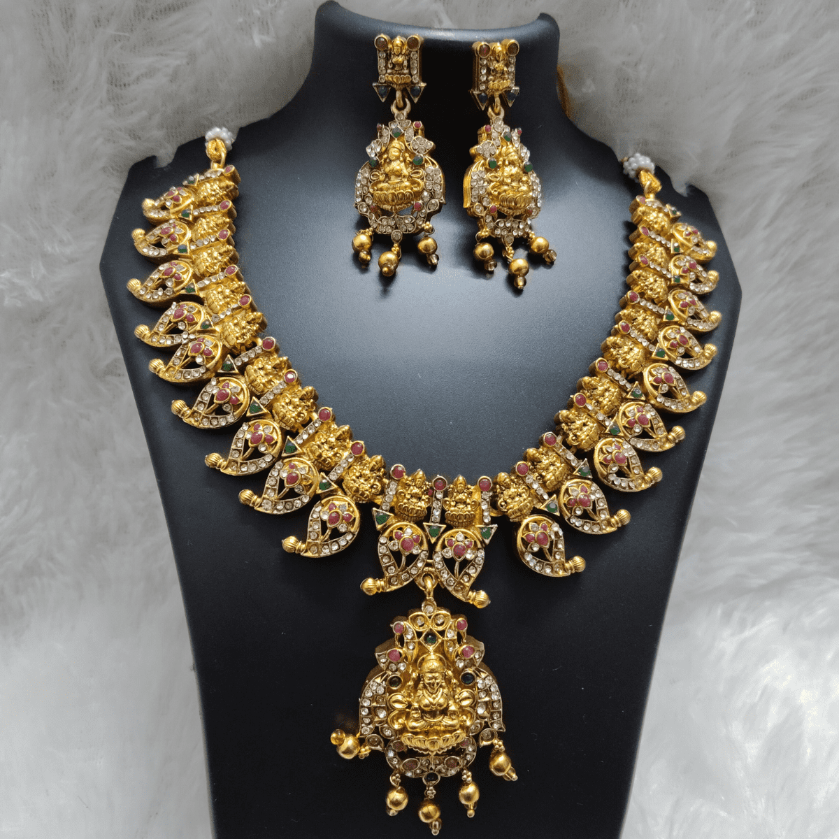 Bridal Lakshmi Temple Necklace Set with Earrings