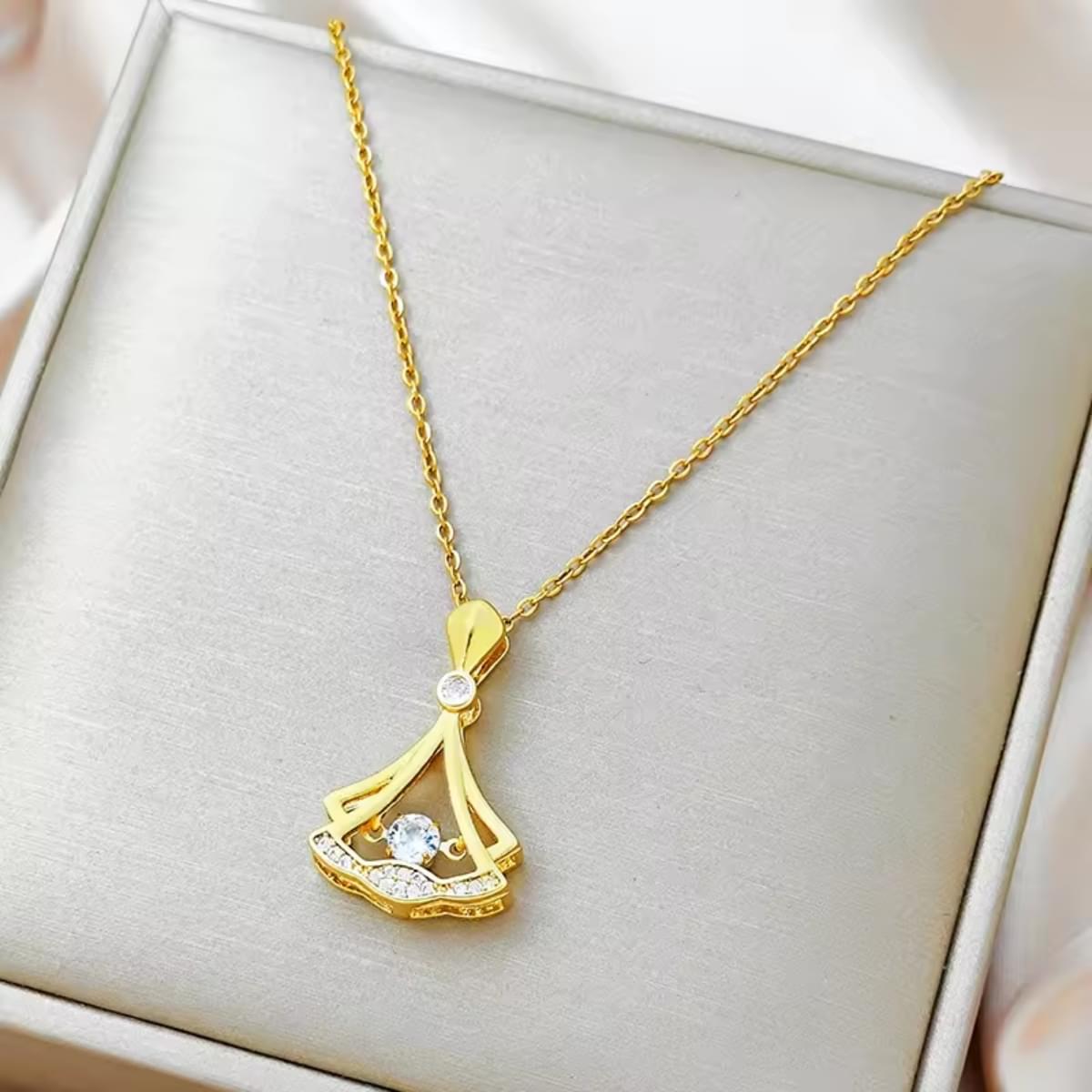 Elegant Crystal Drop Stainless Steel Pendant Necklace